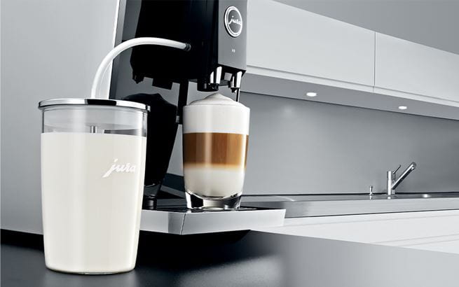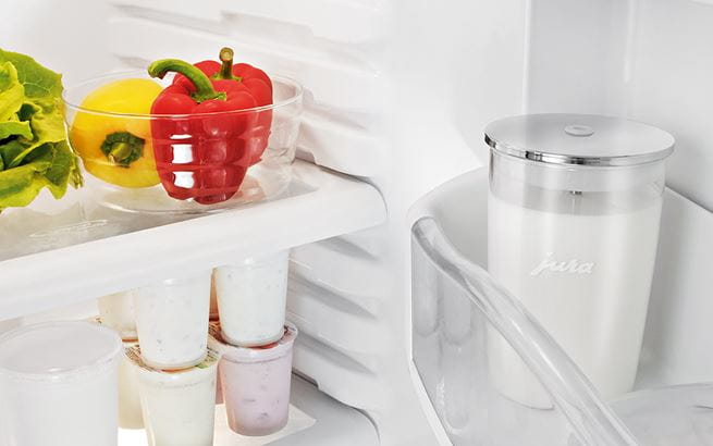 グラスミルクコンテナは人気のフラットホワイトやラテマキアート、カフェラテ等のミルクメニューでおもてなしするコーヒー愛好家にぴったりのアクセサリーです。JURAコーヒーマシンにぴったりのデザインで、冷蔵庫に保存しやすく、必要な時にマシンと接続するのも簡単です。マシンがミルクを引き込んで泡立てるのに最適な高さでマシンと接続できます。コンテナの容量は0.5Lで、食器洗浄機に対応しています。
