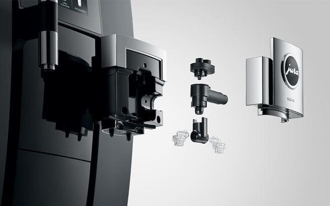 GIGA X8cの2つの高性能なセラミックディスクグラインダーは、新鮮な豆を正確に挽くことができます。トップイノベーションである A.G.A. (自動グラインダー調整) - 電子制御自動再調整システムは自動的に粉量を調整。正確なグラインドを実現します。Pulse Extraction Proces(P.E.P.®)は、JURAが開発した新しい抽出技術。 上質な舌触りとアロマを最大限引き出した